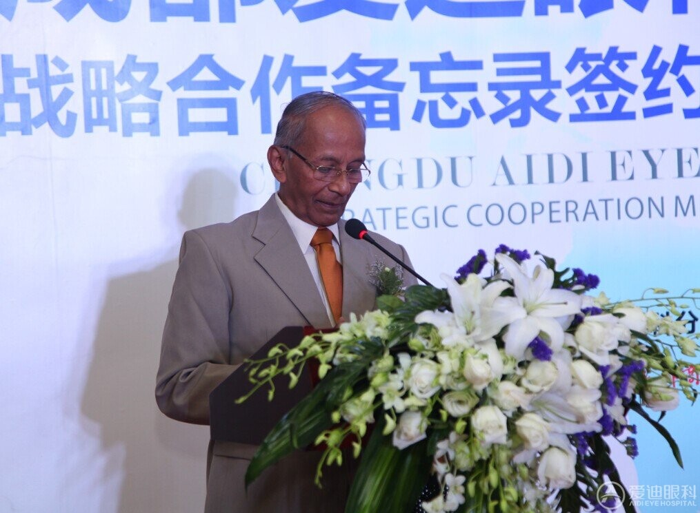 斯里兰卡眼捐献协会主席ARIYAPALA PERERA GAMACHCHIGE在签约仪式上讲话